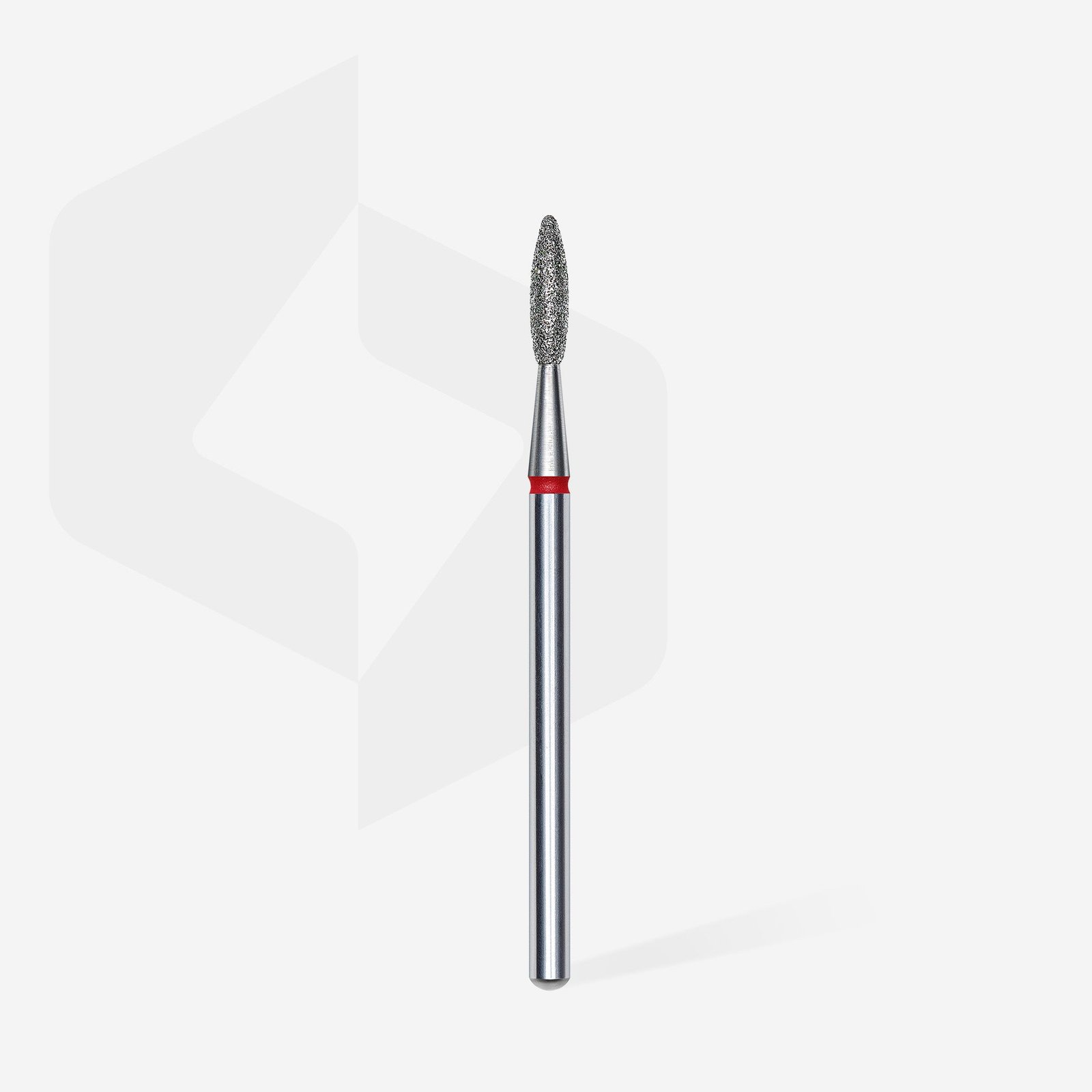 Diamond nozzle for hardware manicure/pedicure. Red notch with soft abrasiveness is for delicate processing of skin, suitable for work by beginners and experienced technicians. “Flame” shape is for processing cuticles, lateral nail folds, and filing out detachments without the risk of injuring the skin. The sinuses are processed with a “nose,” the cuticle is cleaned with a flat part, and the lateral nail folds are processed with a “belly.” Work with this drill bit at an angle of 45 degrees. In manicure: Lifting and removing cuticles. Processing of lateral nail folds. Removal of the pterygium. Opening of the sinuses. Nail modeling. Processing of periungual sinuses. The shaping of a plate of classical shape. Drilling seats for rhinestones. In pedicure/podology: Processing of corn. Removal of cracks. High-quality diamond coating. Can be subject to all types of sterilization and disinfection. Resistant to corrosion.