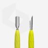 Pushers for manicure and pedicure GUMMY of the new unique series UNIQ offer convenience and precision in one execution. The main feature of GUMMY pushers is a silicone handle, which provides a reliable grip of the tool that allows the technician to work more efficiently and without fatigue. The presence of a hypoallergenic silicone handle and a metal working part makes this pusher a perfect combination of comfort and functionality. Professional manual sharpening of working parts guarantees precise and professional work. The working part “pusher” is designed to lift and push back the cuticle for its further removal. The pusher fits snugly to the nail plate, thanks to a slight bend that repeats the shape of the nail. Standard pusher size for the narrow and medium nail plate, increased pusher size for a wide nail plate. Professional manual sharpening guarantees precise and accurate work. High-alloy stainless steel ensures long service life and corrosion resistance. Steel working parts and silicone are resistant to sterilization in a dry-heat oven and autoclave without loss of quality. Can be subject to disinfection with special agents. Recommended for manicure and pedicure.